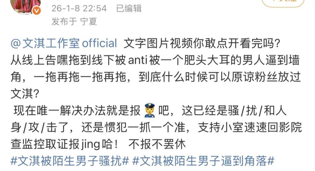 承认自己未经允许强行要求合影,不仅过度打扰了文淇的私人生活,还当众辱骂了文淇及其朋友,直言此举扰乱了对方的工作与生活节奏,给文淇带去了诸多困扰和压力。