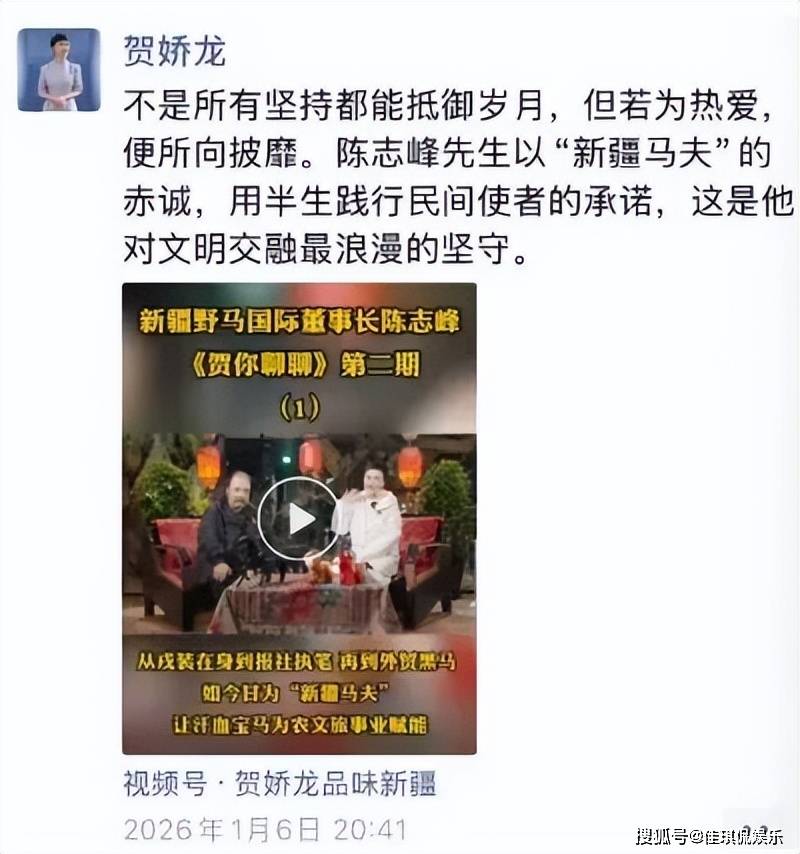 贺娇龙去世前一周,还在朋友圈转发自己专访新疆企业家的视频。