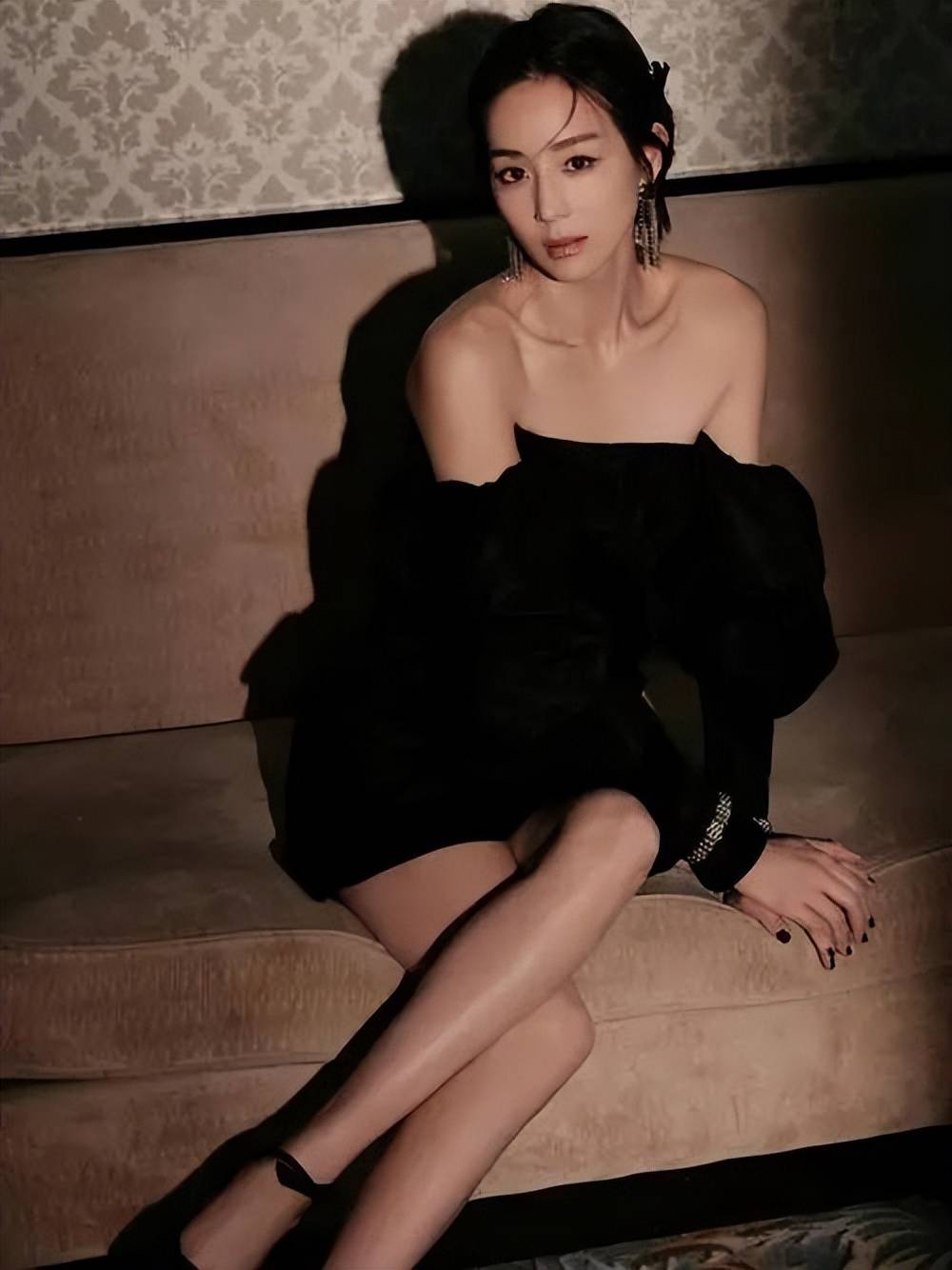 在《风尚志》封面中,张钧甯身着黑色丝绒皮衣与波点黑丝,通过高腰短裤设计、塞衣角技巧及尖头高跟鞋的搭配,视觉上拉长腿部比例,形成“胸以下全是腿”的惊艳效果。