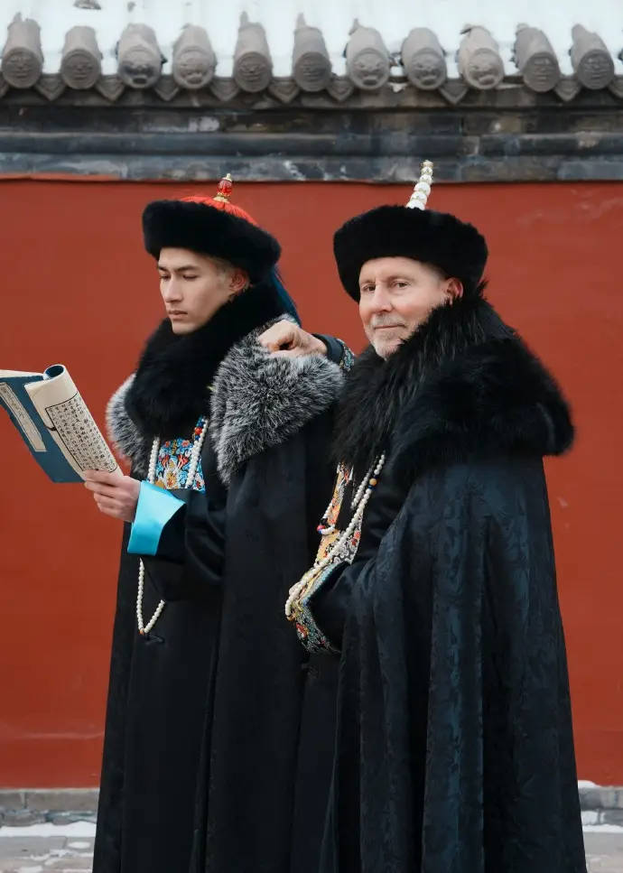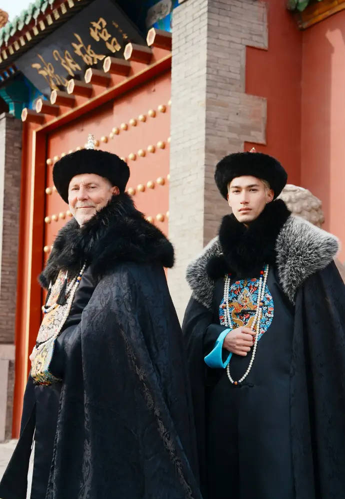 米卡与父亲立于沈阳故宫门前,气势威严又充满古韵。