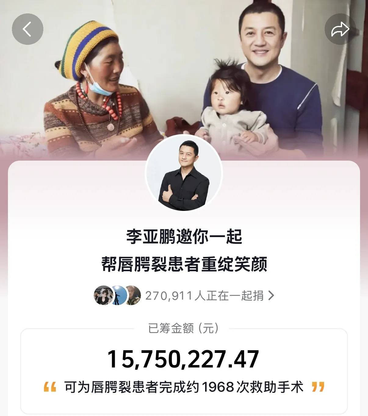短短几天时间,他们就募集了超过1570万,要捐给北京嫣然天使儿童医院,助力它度过生存危机。