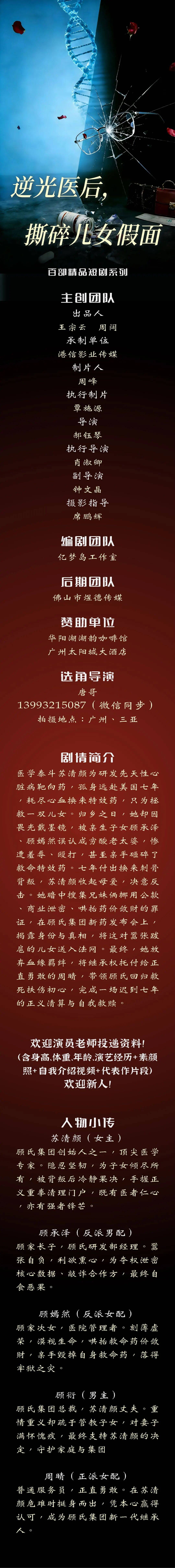 免责声明:戏客Seeker公众号(“本平台”)中全网组讯的信息、内容(“组讯信息”,包括但不限于影视项目名称、项目介绍信息、出品公司信息、导演信息、选角团队信息、拍摄相关信息、联系方式等)均来源于内容信息相关方提供或互联网公开信息。本平台不对组讯信息的真实性、准确性、完整性、及时性、关联性、适用性及安全性提供任何明示或默示的担保。请您谨慎参考或使用组讯信息,并确保您的人身、财产安全,本平台不对您使用或参考组讯信息而造成的后果承担任何责任。
