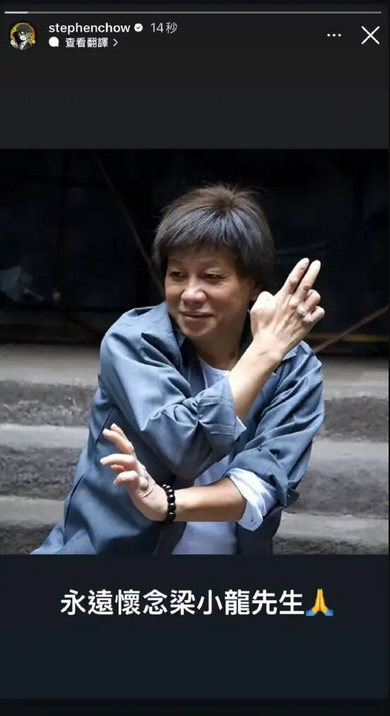 18日,曾与梁小龙合作拍摄电影《功夫》的周星驰晒旧照悼念他:“永远怀念梁小龙先生。”