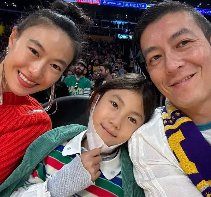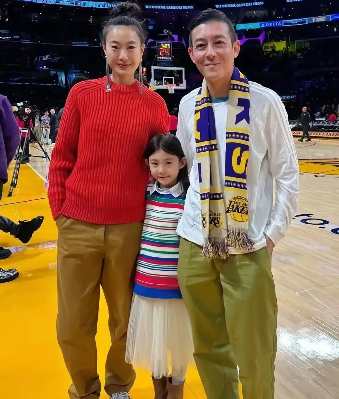 陈冠希女儿站在爸妈中间,像极了备受宠爱的小公主。