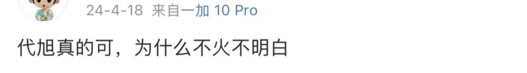 网友这几天可不是光看热闹,好评那叫一个真情实感,“男二的人设不好,但是让代旭演活了”、“主角有桌吗?还配角掀桌,这桌就是代旭搭起来的”、“给代旭单开一本这种人设的剧好吗?看不得帅哥爱而不得”...清一色都是对他演技的认可和对角色的意难平。