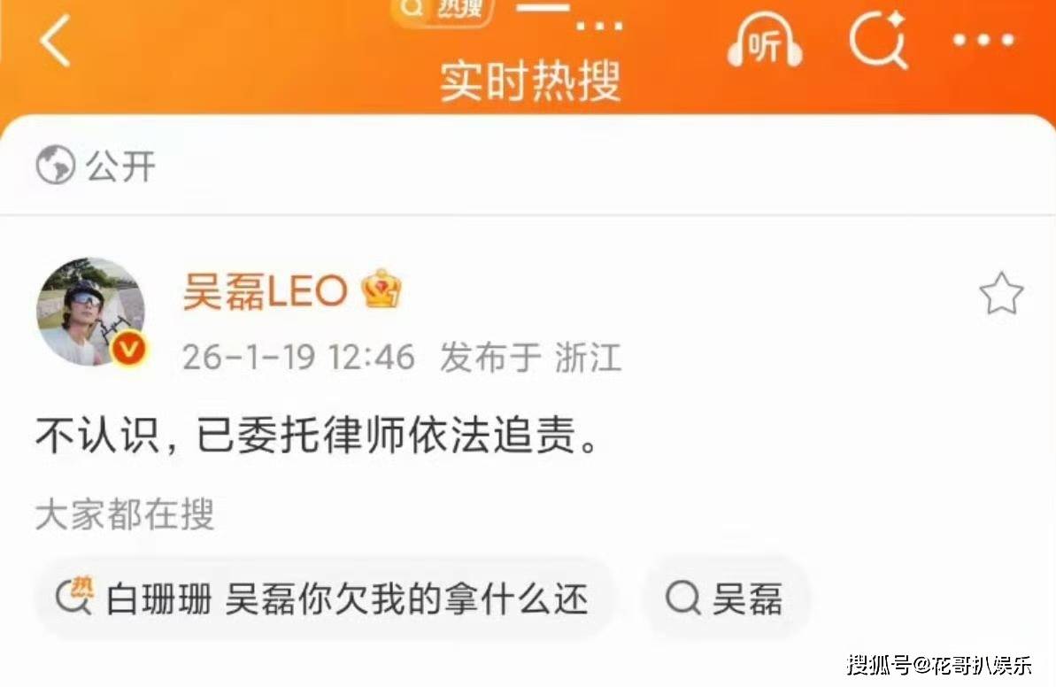 不过这个瓜倒是不保熟,吴磊本人更是亲自下场,说自己不认识,并且已经将相关事宜交给律师,维护自己的权利。说实话,今年被爆出来嫂子的男明星这么多,吴磊的回应算是比较简洁明了而且强硬的了。