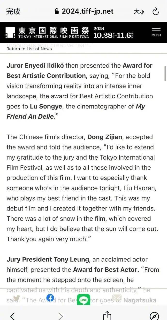 起因是24年东京电影节最佳艺术贡献奖颁发给了电影摄影吕松野;