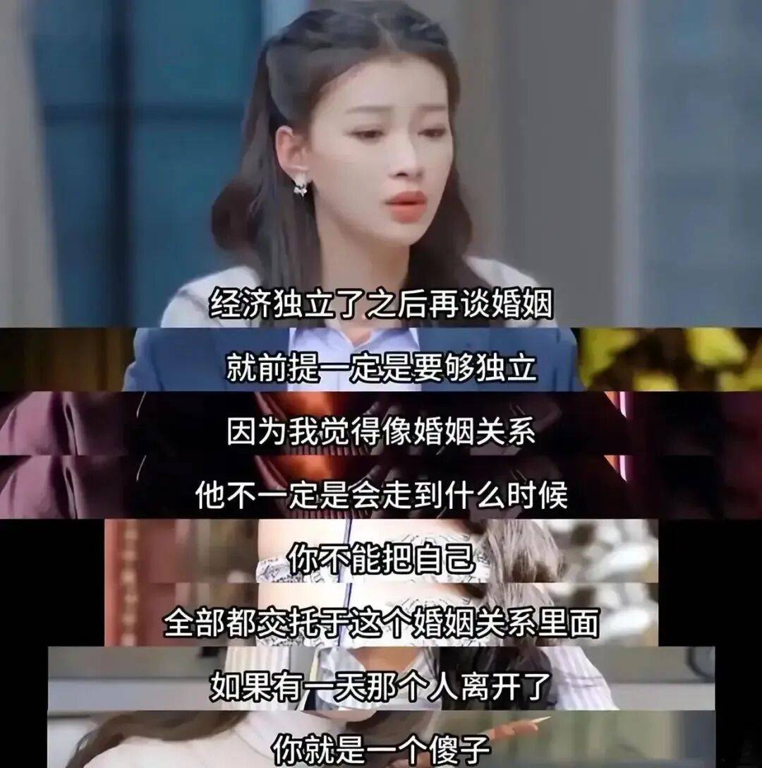 还跳出婚姻往回看,跟女生说要经济独立了再谈婚姻,并且不能把自己全部交付在婚姻里。