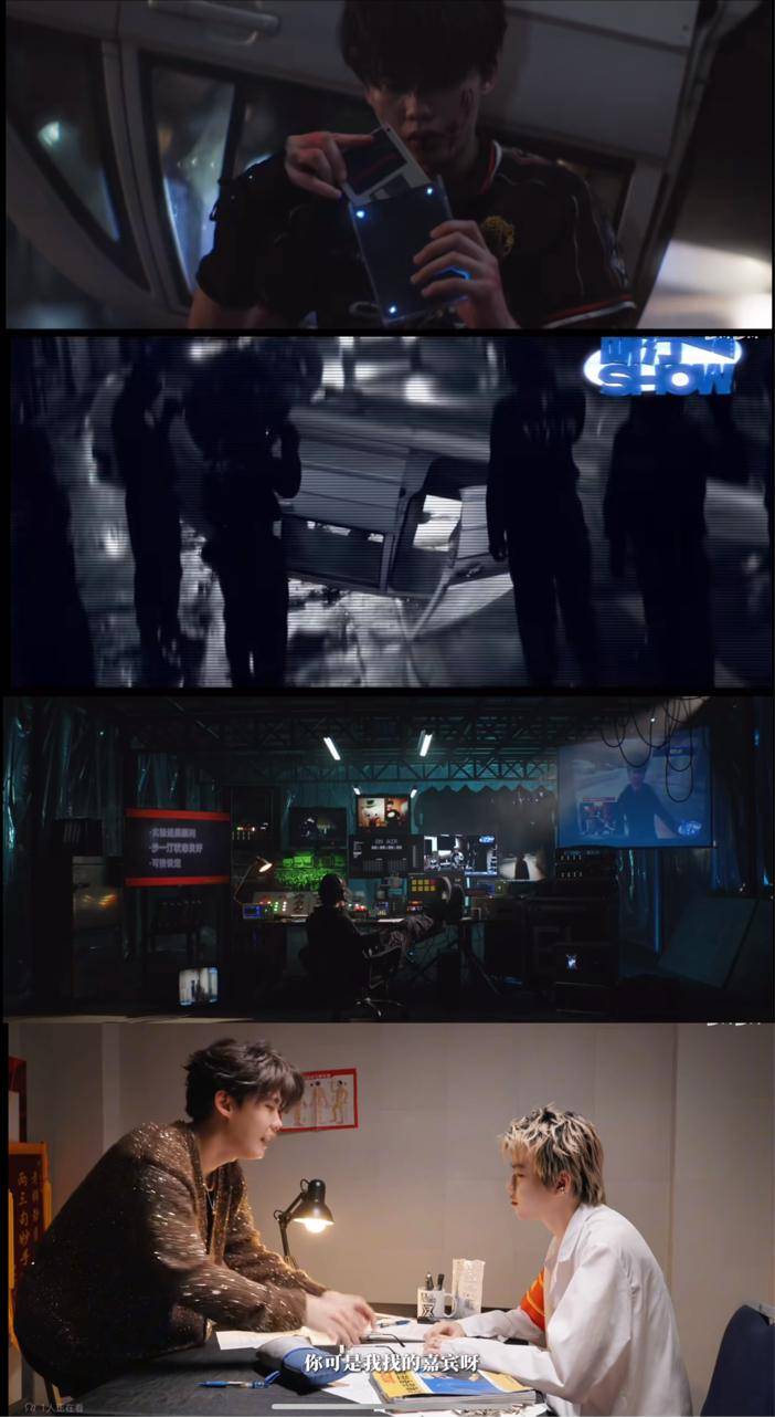比如,过场片中,从开头沙一汀EL逃离沙漏影业追捕的车祸,再到幕后黑衣人意外打翻水杯后引发直播故障,给了剧中沙一汀EL逃生的机会;再到蝴蝶效应一般时间停滞后,后台的沙一汀EL与一动不动工作人员的搞笑互动,再到演唱会嘉宾们陆续登场,“收视率医生”刘思鉴的诊断、颜安与某幻的惊喜客串。