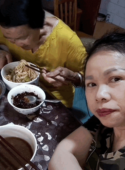 我煮了两碗面,自己的那碗早见了底,便坐在一旁静静看着九十岁的妈妈吃。她碗里还剩大半,可每夹起一筷子面条都嚼得喷香,我瞧着这模样,心里乐滋滋的。