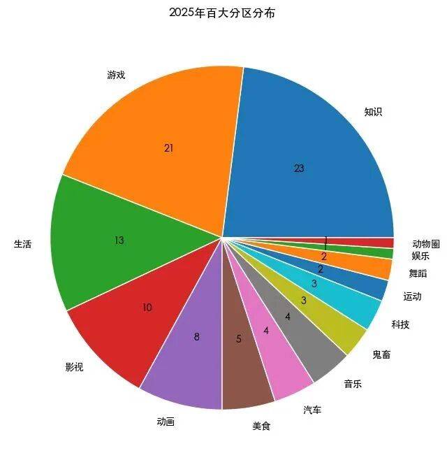 知识区以23人领跑,重回分区第一。影视区崛起,增至10人。