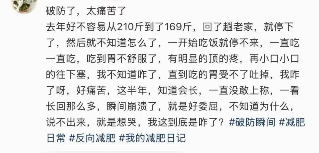 因为减肥暴饮暴食而痛苦的女生,图源:@胖果果要瘦