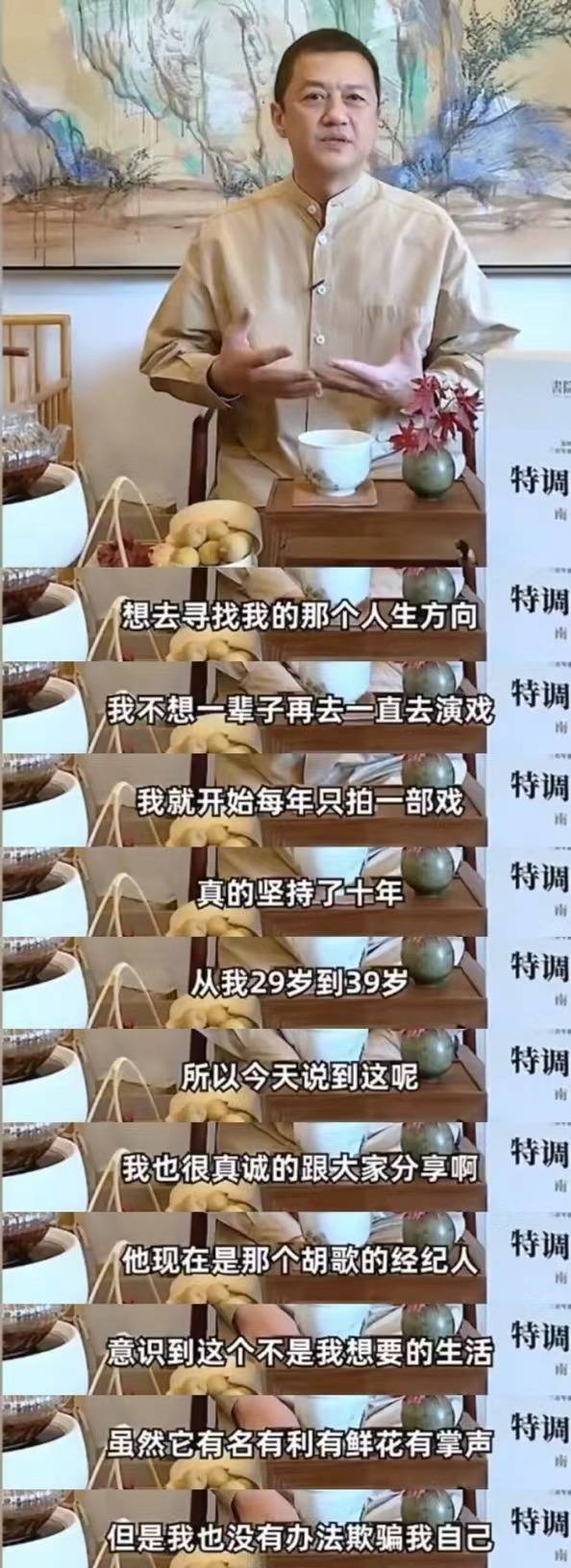 当时他的经纪人是现在胡歌的经纪人,虽然当演员可以拥有丰厚的收入,甚至有鲜花和掌声,但这不是李亚鹏想要的生活,他无法欺骗自己,他要换一个活法。