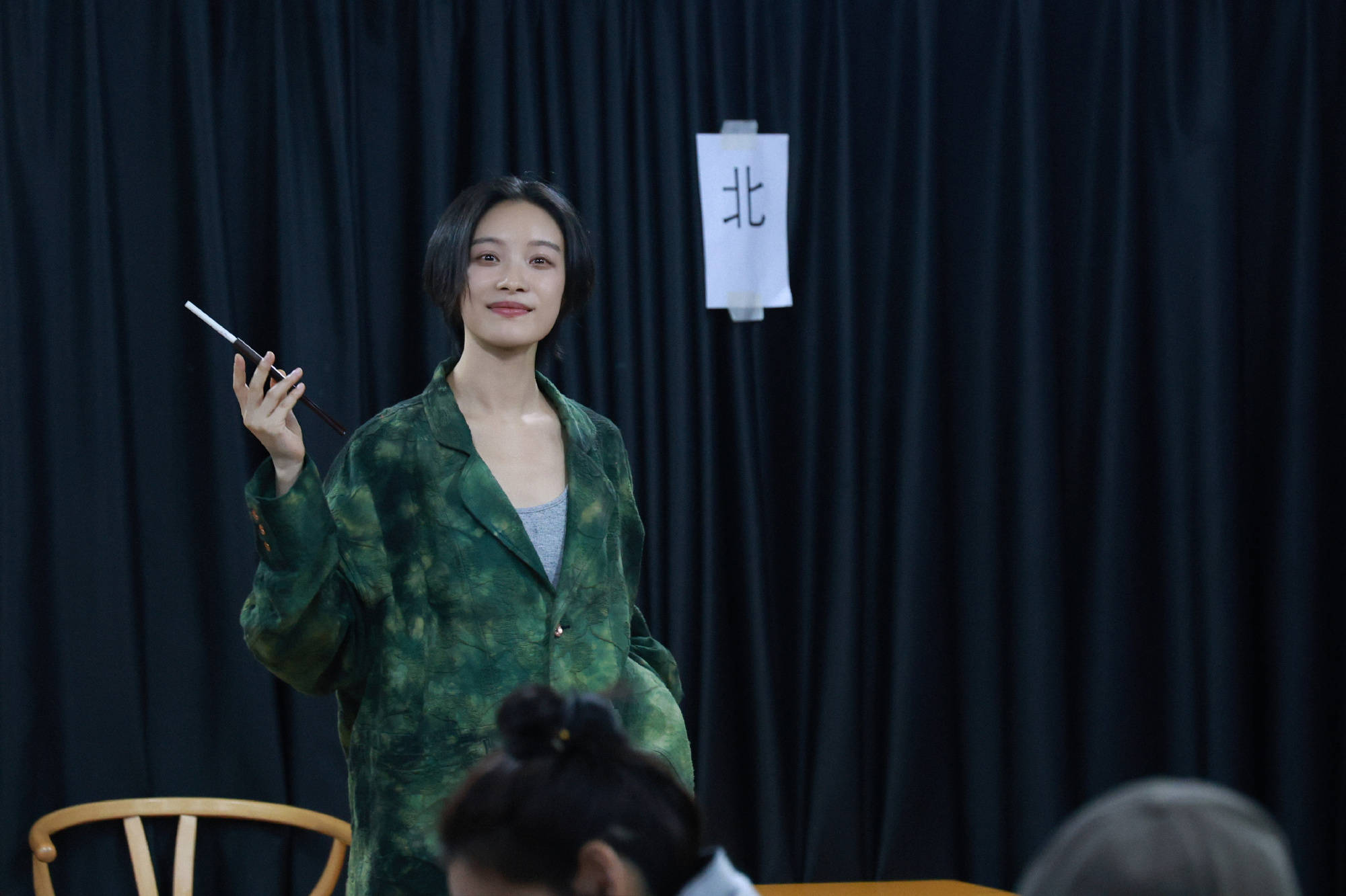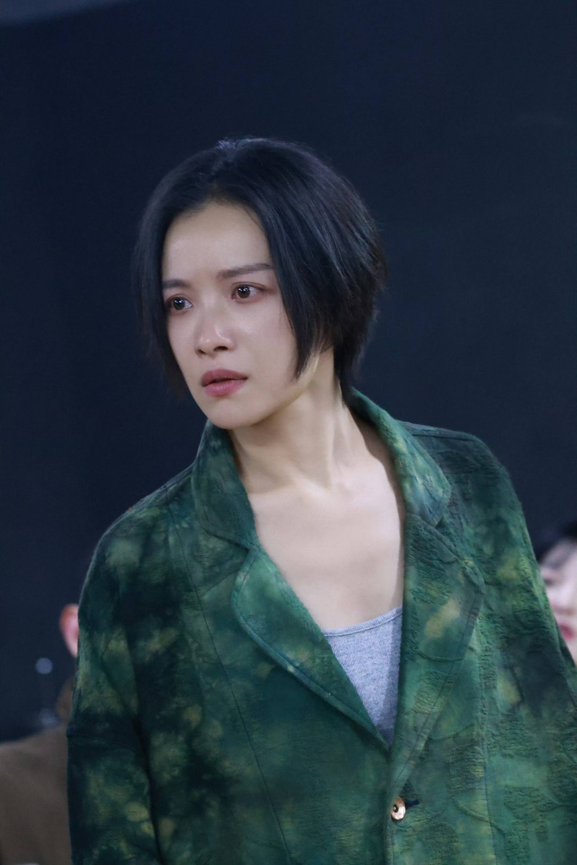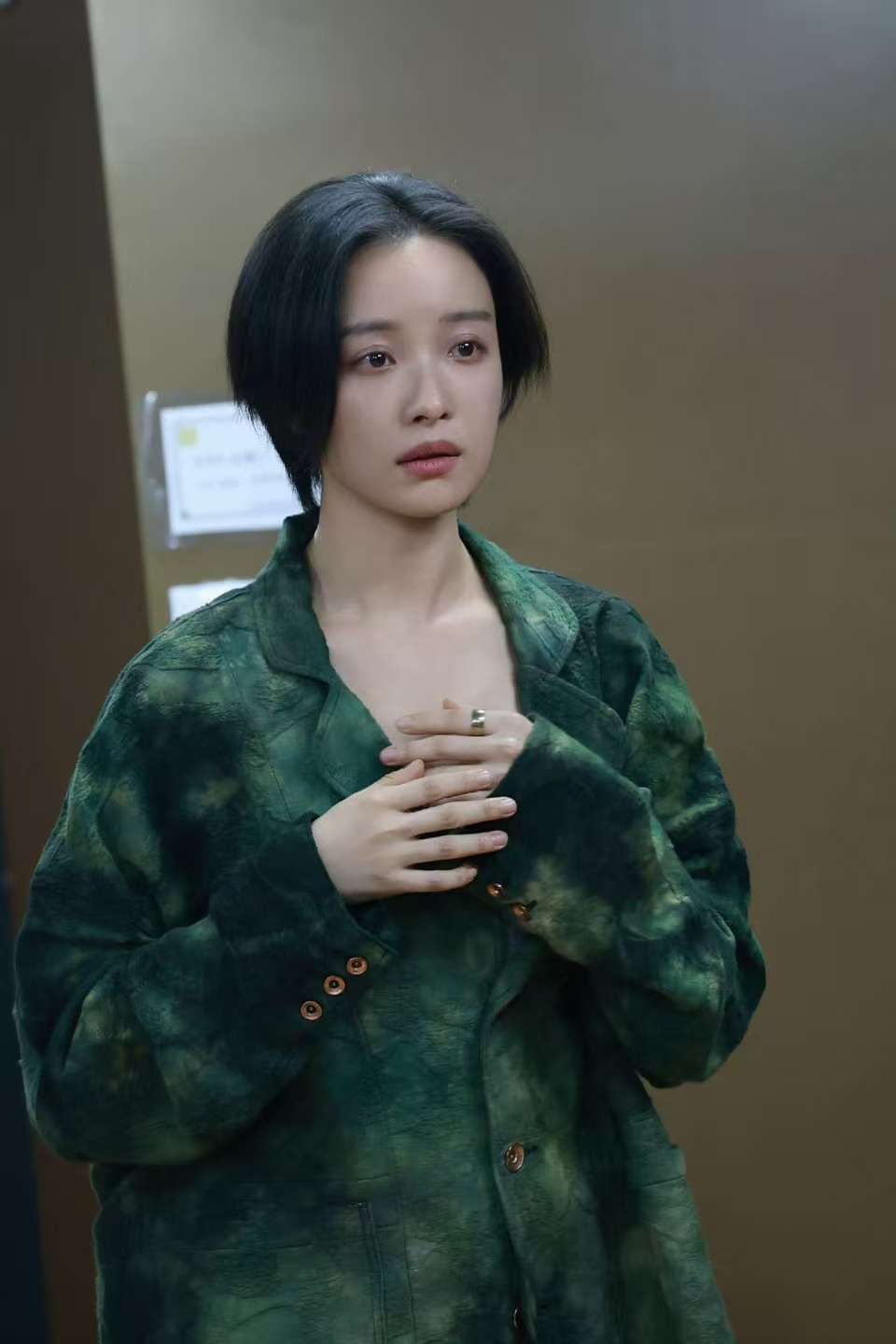 搜狐娱乐讯 近日,倪妮话剧排练照曝光,墨绿宽松西装搭利落短发,状态专注又投入。