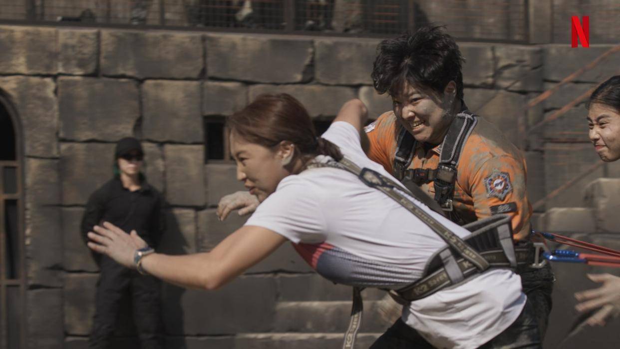 与传统全女综艺不同,《海妖的呼唤》彻底摒弃了哭诉、和解的情感套路。推塔战中,消防员组为抢夺旗帜直接撞碎木门;遭遇偷袭时,运动员组一个过肩摔把对手按进泥潭。没有"女人何苦为难女人"的矫情,只有全力以赴的尊重。
