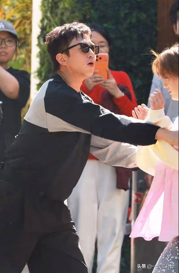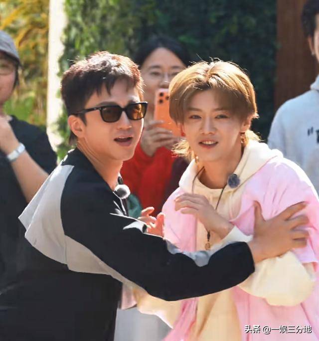 邓超跟范丞丞一样,状态都是处于“显眼包”的姿态,在路人拍摄时,指着自己,在表达拍我拍我。