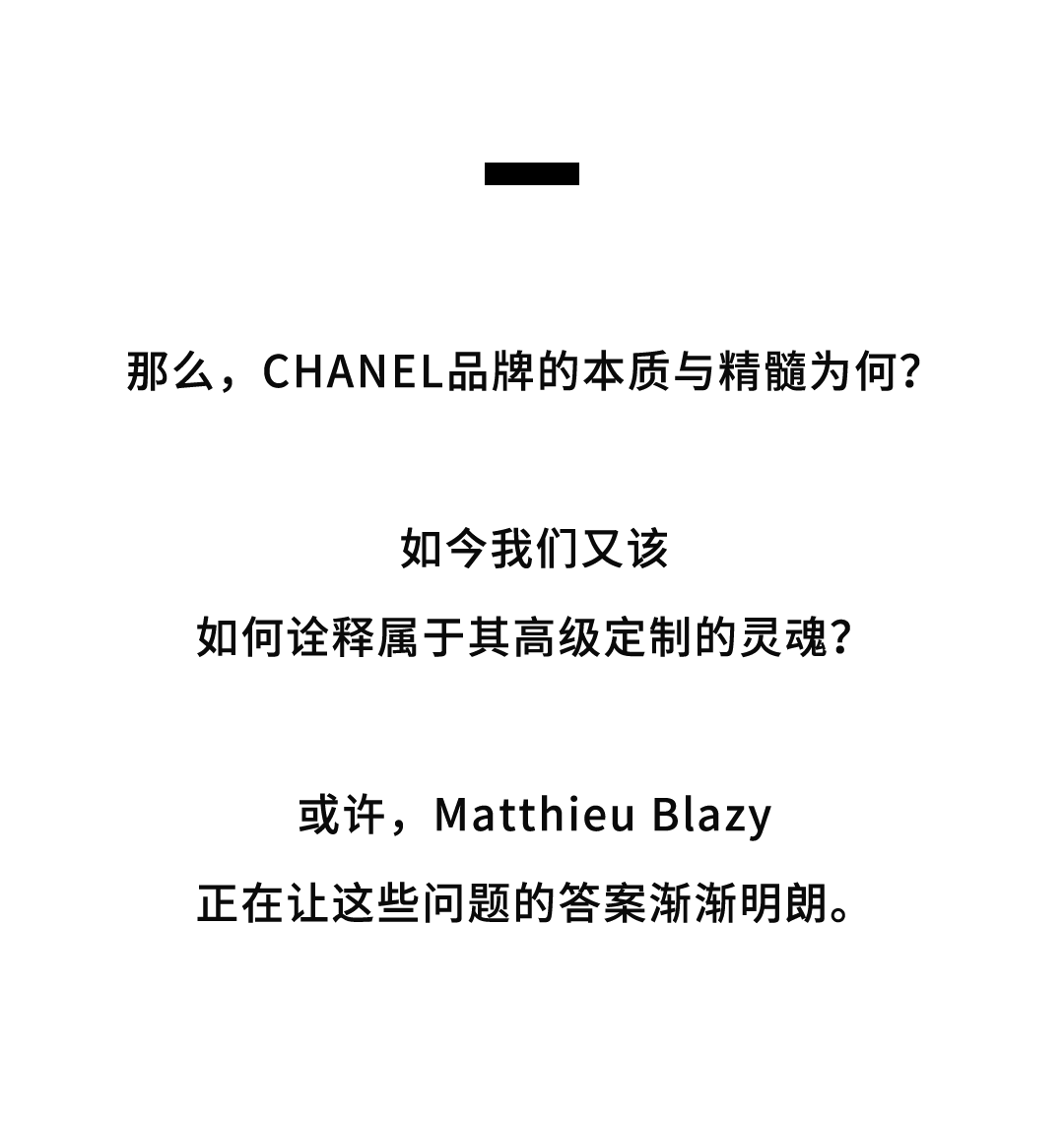 “高级定制服是香奈儿的灵魂——它是品牌的基石与完整表达。这些服装不仅关乎设计师,更关乎穿着者。唯有穿在身上,它们才真正拥有了故事;那是属于它们自己的故事,一种情感的共鸣,为女性提供一幅自我叙事的画布。”