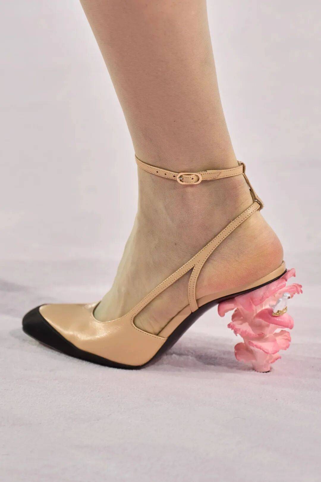 本季的鞋履设计则回归了简洁百搭的风格语汇。经典的双色鞋经过圆润化处理,鞋头线条更加柔和,而鞋跟上的巧思仿佛被森林中的“精灵”包裹一般,满是天真童趣,又不失法式优雅的基因。