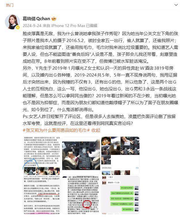 袁巴元前妻葛晓倩爆料她“出轨成性”。