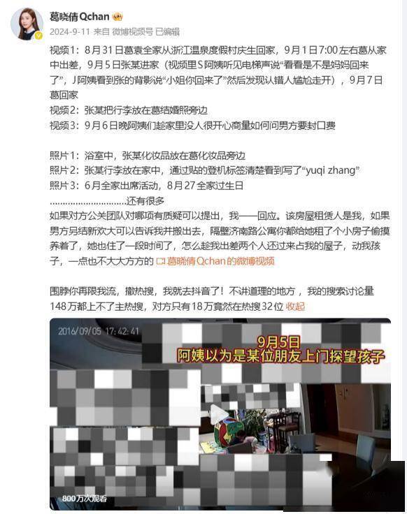 除此之外,葛晓倩还曝光了2016年的监控截图,显示: