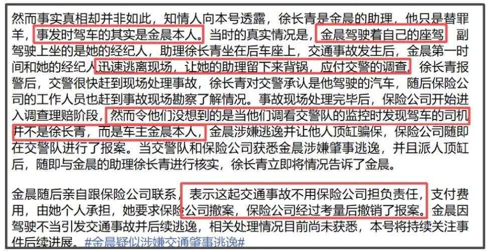 金晨涉嫌肇事逃逸找助理顶包风波有了新进展,官媒发声了。