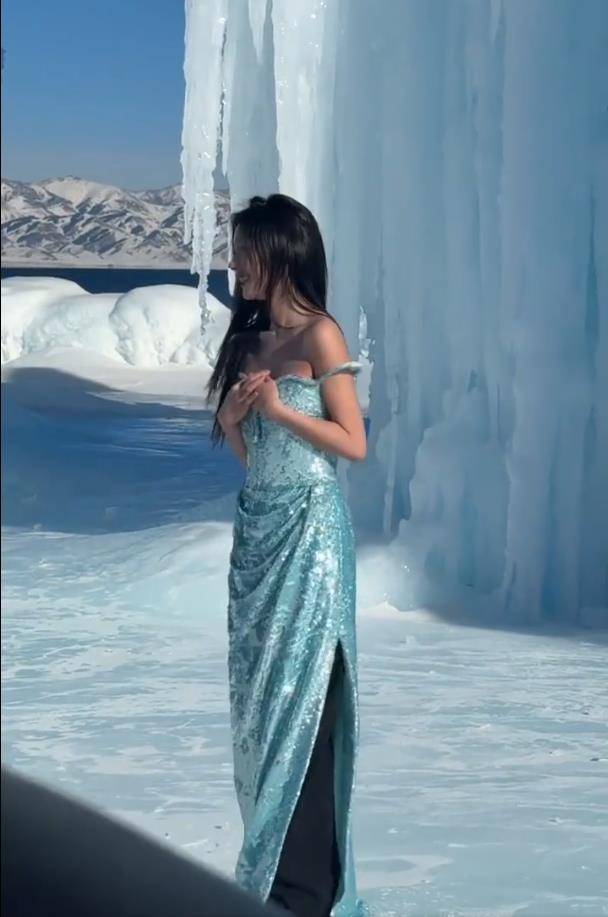 网红易梦玲在冰天雪地里的一袭蓝色吊带亮片裙,成功“冻”住了热搜。视频里,她站在新疆赛里木湖的冰川区,赤臂出镜,与周遭的茫茫白雪形成刺眼对比,瞬间点燃了网友关于“美丽与温度”的激烈辩论。
