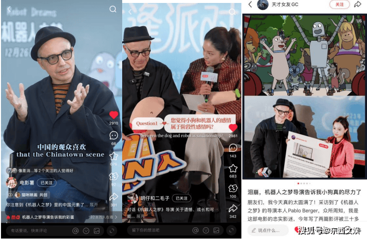 《机器人之梦》便是这套打法的成功范本。在这部奥斯卡提名电影重映之际,游学团邀请达人@ 许文婷 @猫咪映画 等专访导演Pablo Berger,从角色解读、细节揭秘角度带来抢先预热,切入影片独家幕后内容,吸引核心粉丝关注电影重映,在上映阶段显著拉升站内讨论热度。