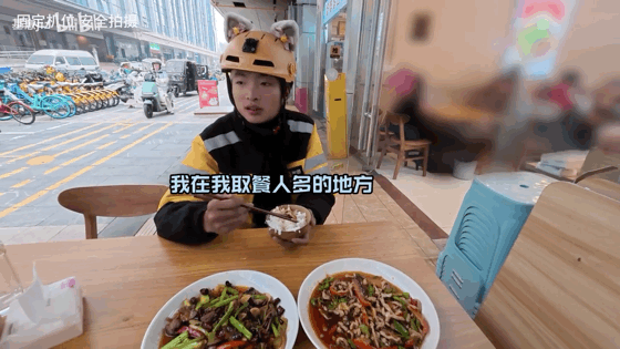 每天他都很努力的送外卖、拍视频。