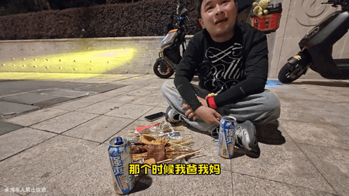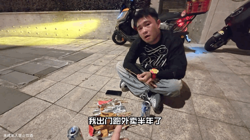 他家里养了四个孩子,压力大,妈妈岁数不小了,也依旧每天跟着他一起出摊。