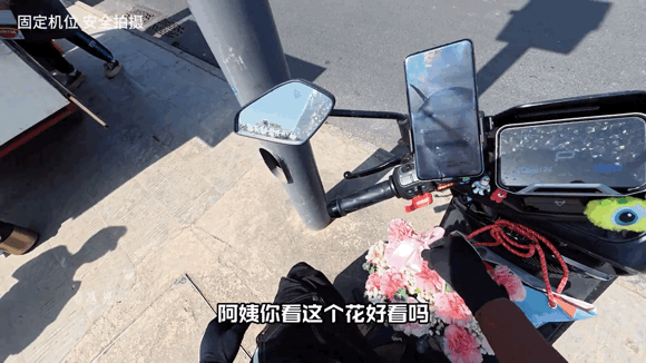 等基崽把花拿给老板妈妈的时候,她满脸开心。