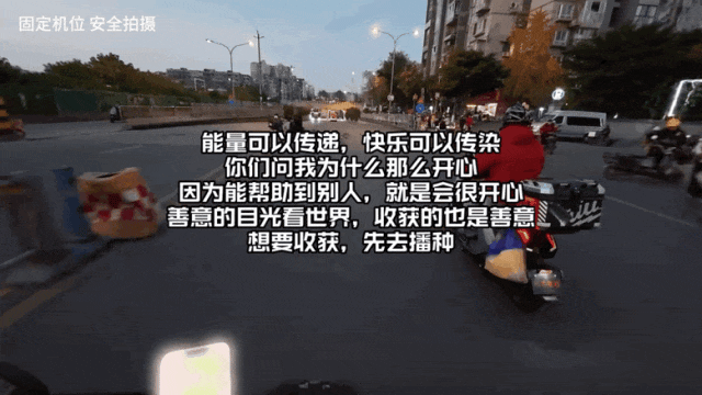 他只是觉得在送外卖的时候,能把能量还有善意传递出去,就很值得开心。