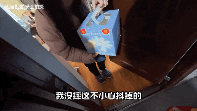 路上不小心碾过障碍物,车身一晃,蛋糕有些变形。