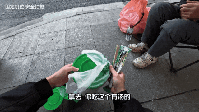 他给自己拿了一个之后,还顺手给了旁边环卫大叔一个。