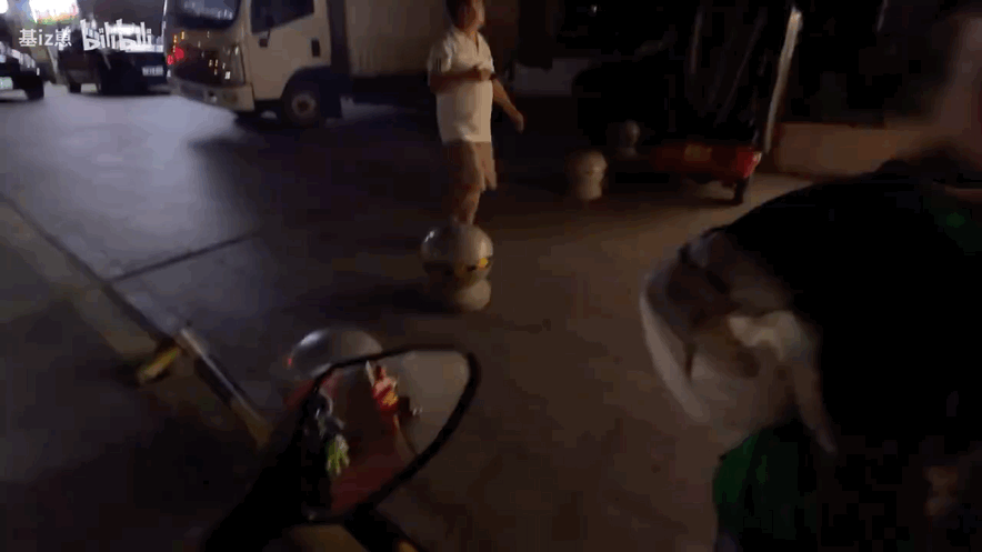 基崽发现有两个骑小电驴的人,没有戴头盔。
