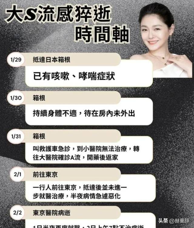 令人百思不得其解的是,为什么在大S出现咳嗽、哮喘迹象的初期,即1月29日抵达日本的第一天,没有任何人选择立刻按下暂停键?