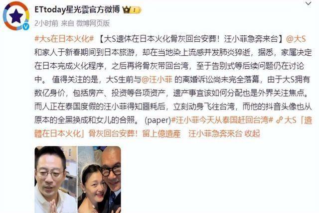 更令人发指的是,葛斯齐还爆料,大S离世后,S家在不到24小时内,就火速将她的遗体火化,没有进行尸检,甚至动用关系,让台媒“封口”,不许多问半句。