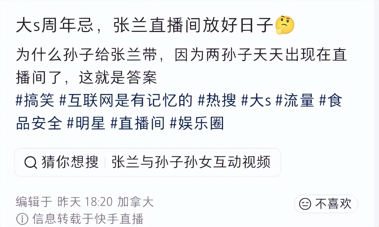 反倒是大S前婆婆张兰的举动才是最惹人质疑的。