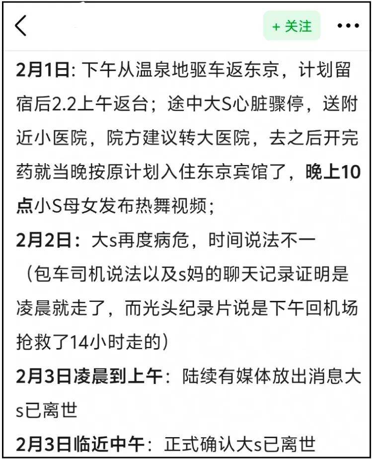 就是S家透露大S是2月2号凌晨去世的,具俊晔在韩综里却强调大S是在去机场的路上病危,送去医院抢救14个小时不治才走的,被人质疑故意模糊时间线。