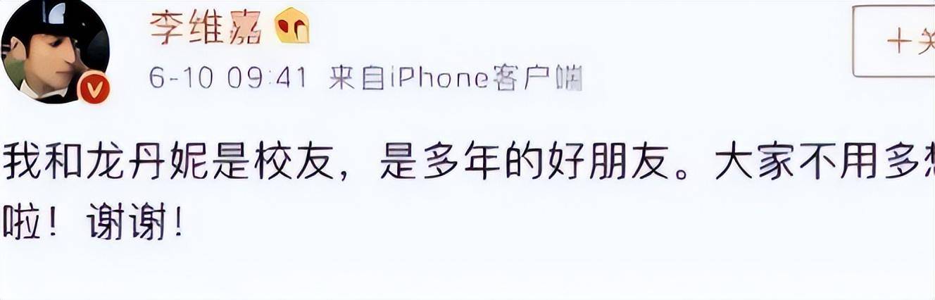 “我和龙丹妮是校友,是多年的好朋友。大家不用多想啦!谢谢!”
