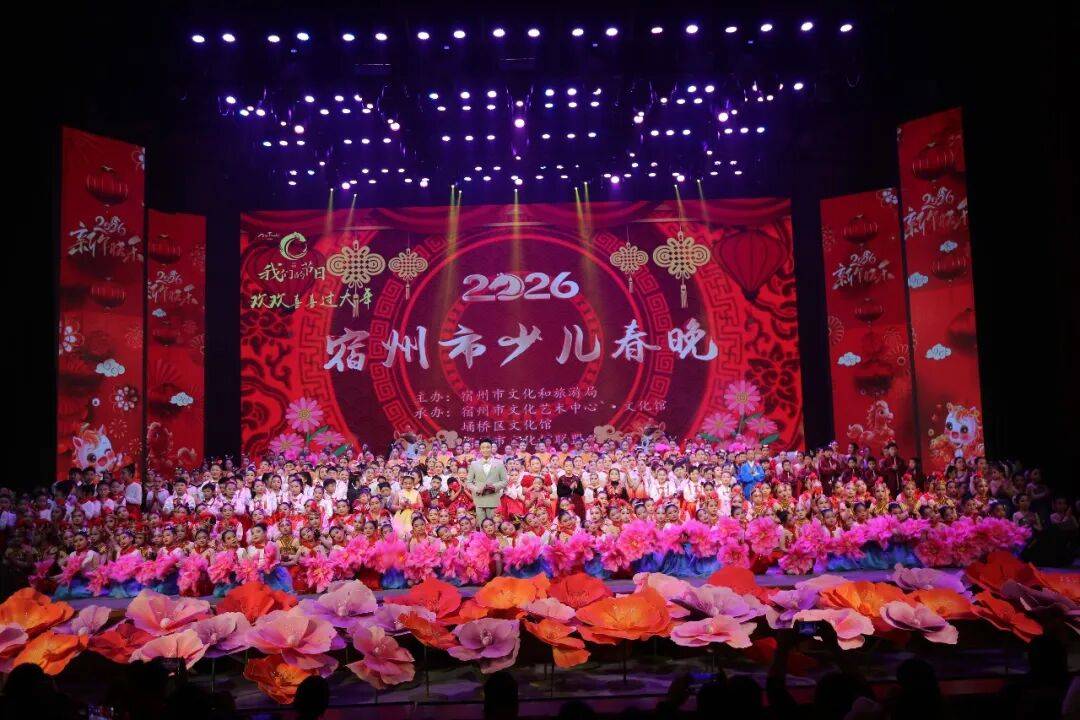 金蛇起舞辞旧岁,骏马奔腾迎新春2月8日下午,由宿州市文化和旅游局主办、宿州市文化艺术中心·文化馆、埇桥区文化馆、宿州市文化馆联盟承办的“我们的节日——欢欢喜喜过大年”2026年宿州少儿春晚在市文化艺术中心大剧院圆满落下帷幕,近500名小演员参加演出,1100多名观众现场观看。本次活动通过宿州文化馆视频号同步网络直播,线上观众累计点赞4万+