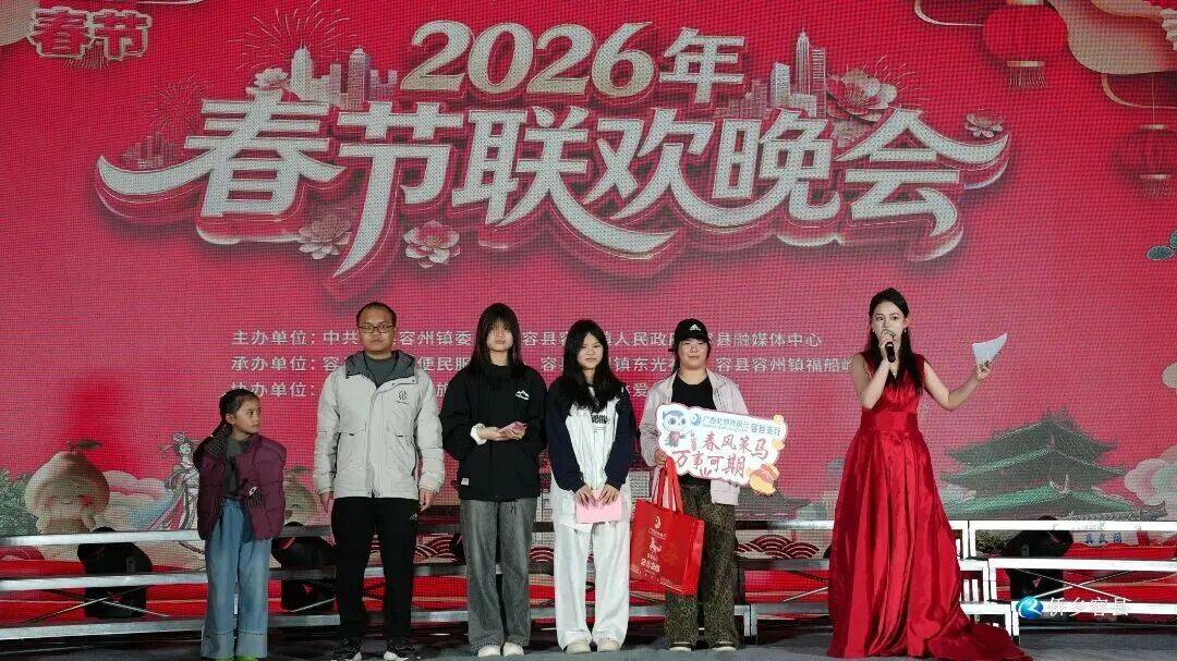 2月6日晚,容县容州古城广场灯火璀璨、欢声洋溢,一场以“创文明城市 建幸福家园”为主题的2026年春节文艺晚会精彩上演。