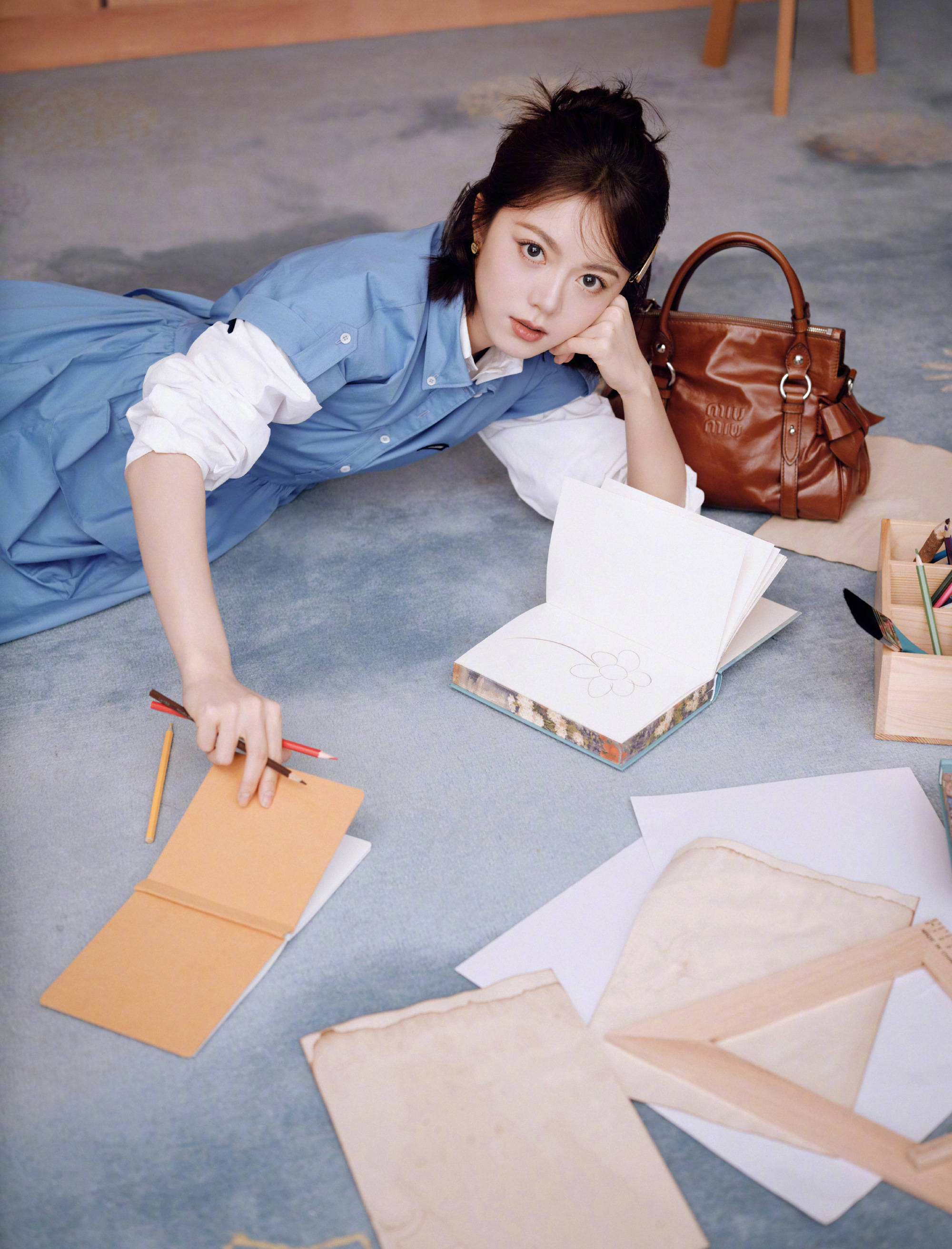 赵今麦咬彩铅翻画册,娇憨可爱。