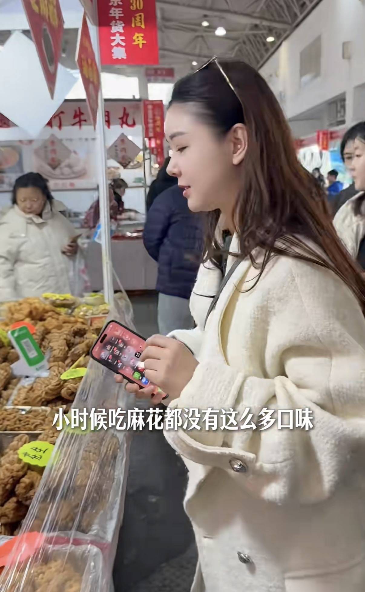走着走着,又到了一个卖花生酥的摊位。李小萌说,这个摊位的花生酥入口即化,非常好吃。不出意外的她又买了一部分,回家和老公儿子分享。