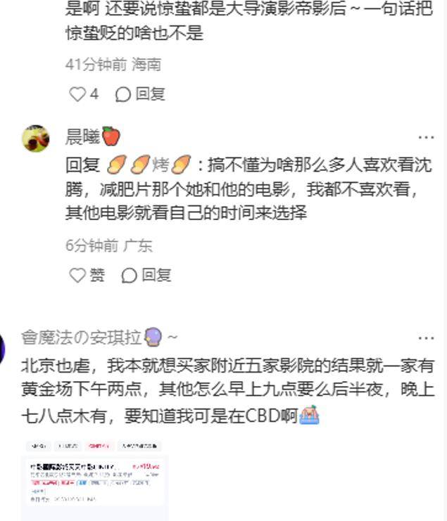 于是乎,有网友提前嘲起了《惊蛰无声》,让它别再占着这么高的排片,呼吁它多吐点排片,给排片掉队的电影。