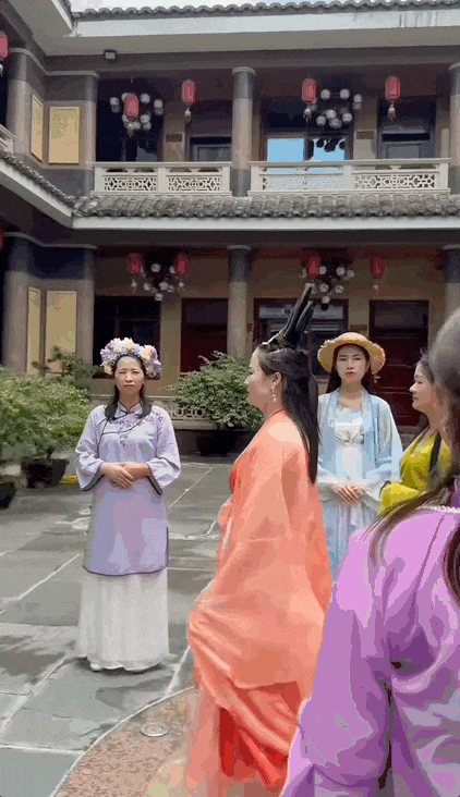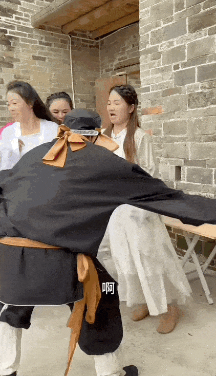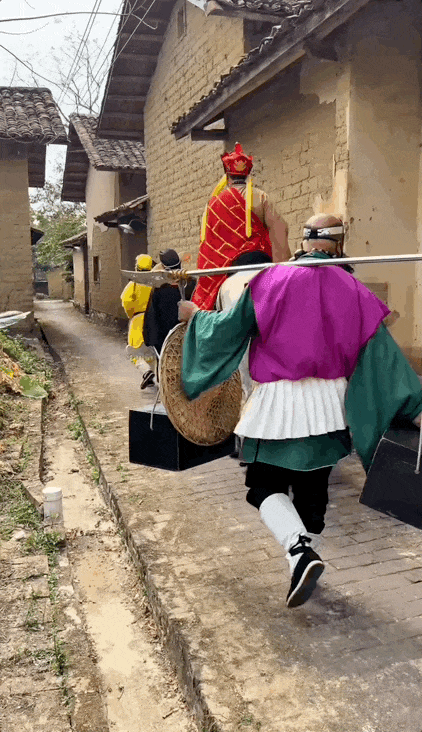 镇上的文化广场化身女儿国都城,来了一出女儿国抢亲的戏码。