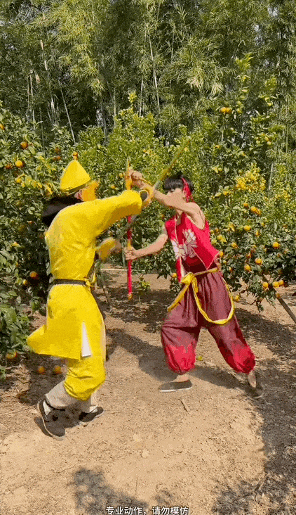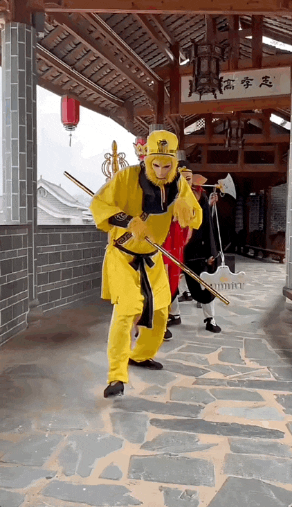 孙悟空的第一任扮演者是一位50岁的村民,后来因为体力跟不上换成了陈淼18岁的儿子。