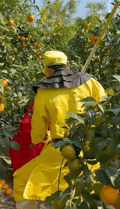 于是,这场戏村里的妇女客串蜘蛛精,爬藤架,摘百香果,边演边干活。