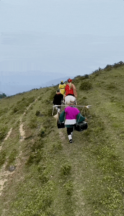 为了拍到云海,师徒四人加白龙马,开车2小时,再徒步爬山8小时。