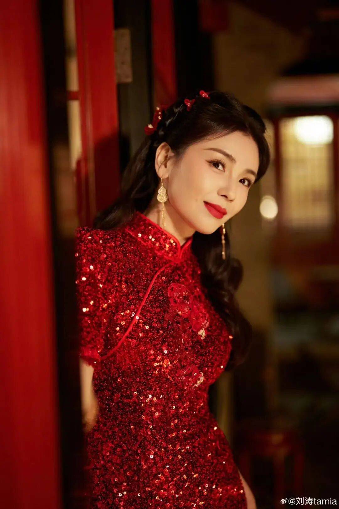 刘涛凭#刘涛该叫妈妈还是姐姐#再次在春晚出圈,堪称“妈姐感”天花板。她身着红色亮片新中式旗袍,亮片熠熠生辉,将中式韵味与新年喜庆完美融合。明艳红唇衬得气色红润,搭配长款金耳饰更显精致,倚靠在红柱旁的模样,尽显新年吉庆雅致。