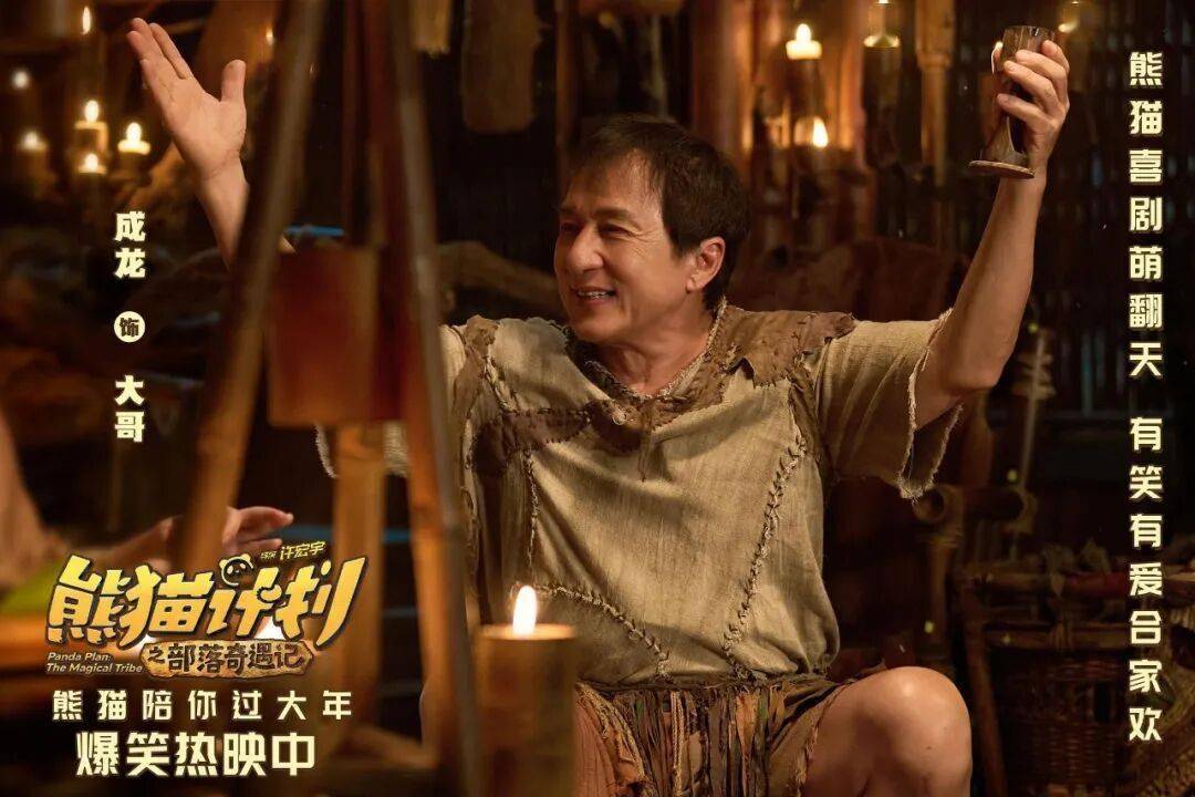 除了熊猫“胡胡”,影片还集结了成龙、马丽、乔杉、于洋等一众喜剧演员,组成“双国宝+实力派喜剧天团”的阵容。在剧情设计上,影片摒弃了复杂的冲突与深刻的思辨,走简洁明了的奇幻冒险路线,聚焦于“Jackie与熊猫胡胡的部落奇遇”这一核心主线,没有狗血的剧情,没有尖锐的矛盾,只有轻松有趣的冒险过程与温暖治愈的情感互动。这种简洁的剧情设计,让影片具备了“零门槛入场”的特性——无论是年幼的孩子,还是年长的老人,都能轻松看懂剧情,跟上节奏,不需要花费过多的脑力去解读复杂的人物关系与剧情反转。孩子们关注的是熊猫胡胡的萌态与奇幻的部落冒险,大人们则能在轻松的剧情中放松心情,享受片刻的欢乐。